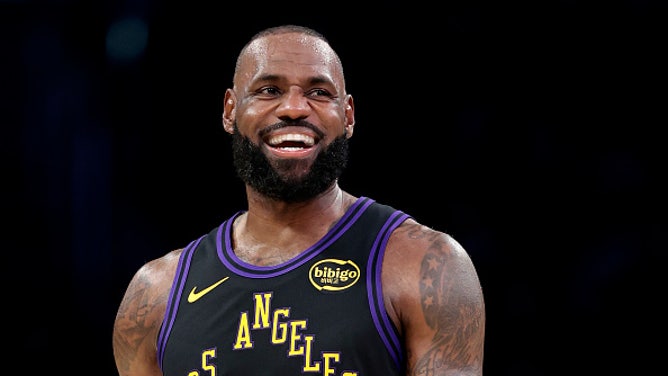 LOS ANGELES, CALIFORNIA - NOVEMBER 18: LeBron James #23 of the Los Angeles Lakers reacts against the Utah Jazz during the second quarter at Crypto.com Arena on November 18, 2025 in Los Angeles, California. (Photo by Ronald Martinez/Getty Images)