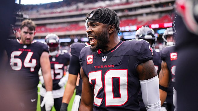 HOUSTON, TX - DECEMBER 15: Jimmie Ward #20 of the Houston Texans leads a huddle prior to an NFL football game against the Miami Dolphins at NRG Stadium on December 15, 2024 in Houston, Texas. (Photo by Cooper Neill/Getty Images)