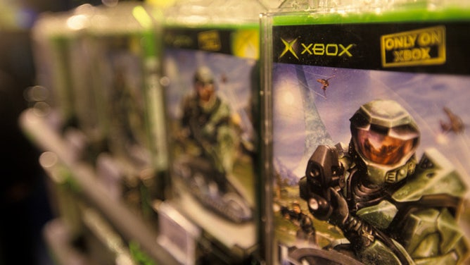 Halo video game for Microsoft's Xbox game system on sale at the Toys 'R' Us flagship store in Times Square. (Photo by James Leynse/Corbis via Getty Images)