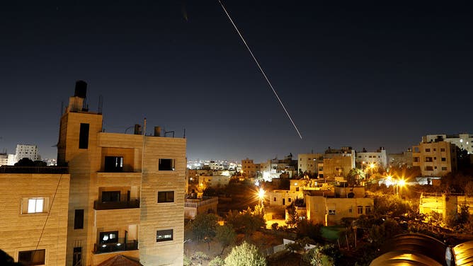 WEST BANK - AUGUST 22: A view of missiles that are fired from Yemen toward Israel are seen across the skies over the West Bank on August 22, 2025. (Photo by Wisam Hashlamoun/Anadolu via Getty Images)